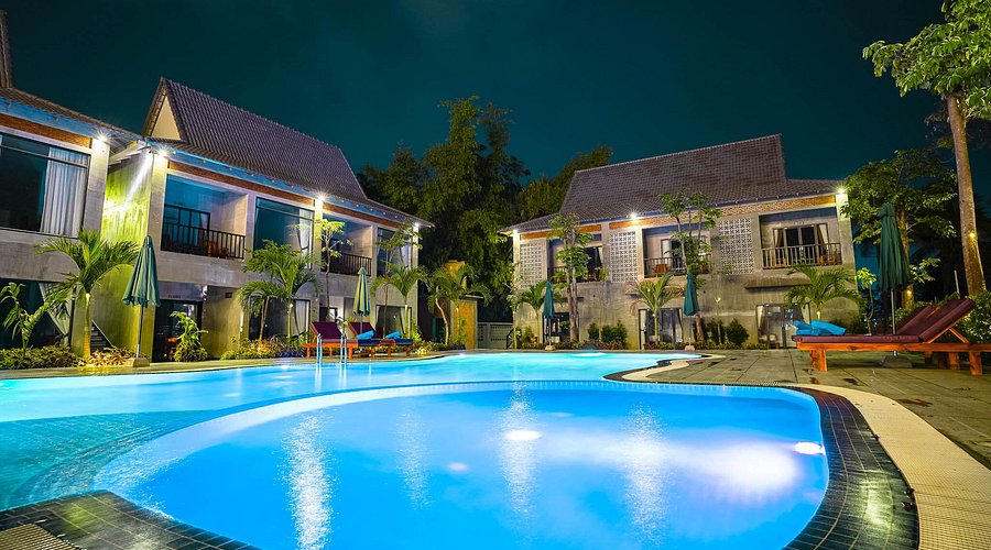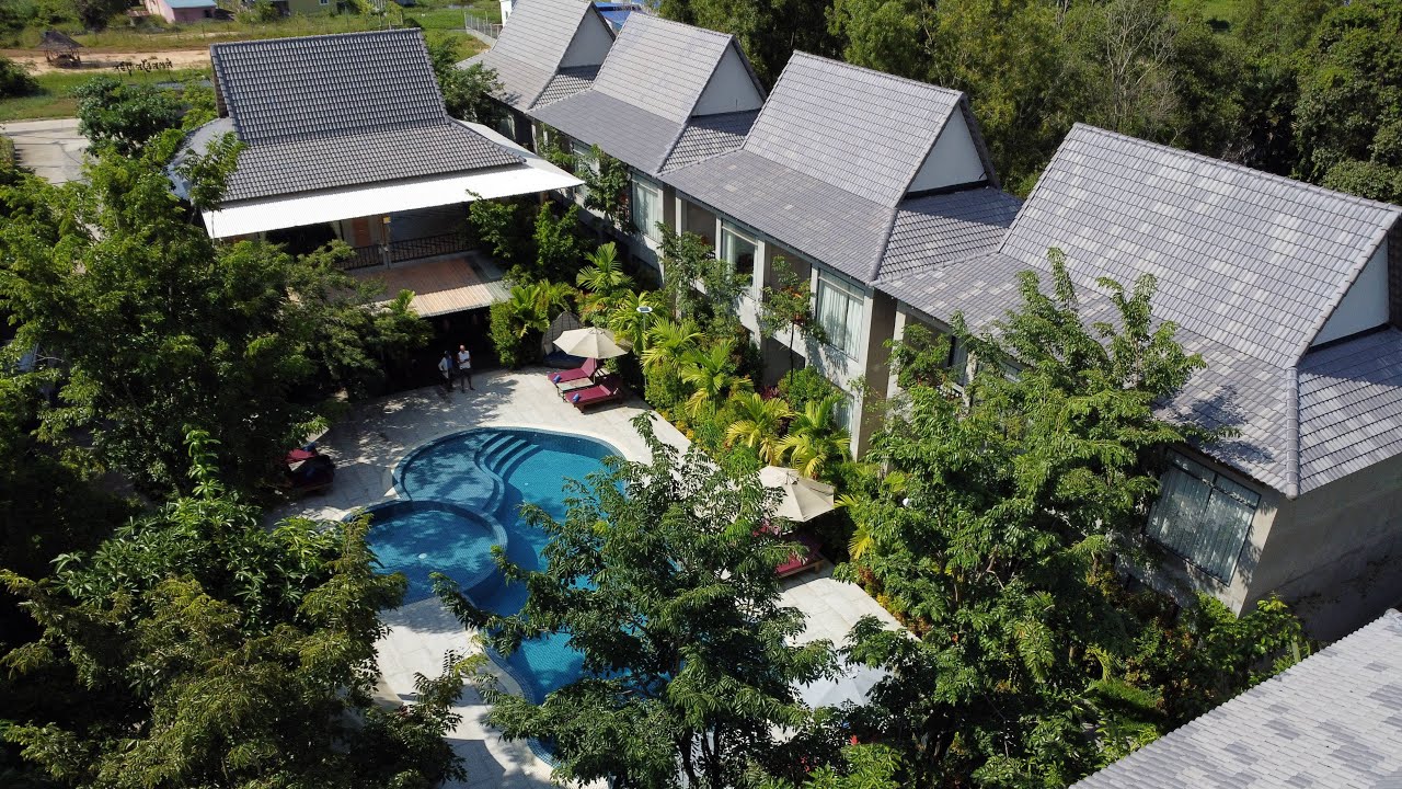 Boutique hotel with pool, gardens, restaurant, gym and family-friendly rooms near Kampot city.